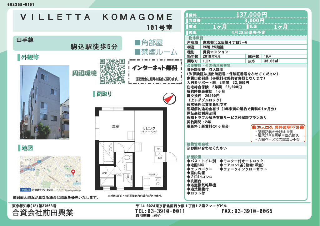 人気の駒込、田端4丁目エリア。駒込駅より徒歩5分。バス・トイレ別の1LDKのお部屋です。